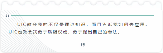 “由于缺乏系统的生物学基础,而从事的生物统计工作要解决的都是生物学研究的问题。这对于我是个挑战,但在UIC的教育,为我快速补充生物学知识提供了方法。”